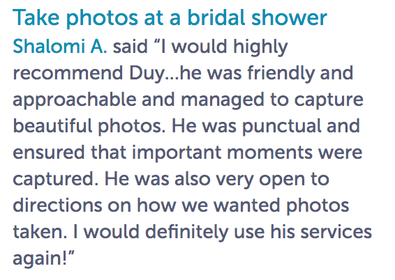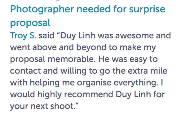 I have taken photos for many wedding related events such as wedding ceremony, pre-wedding, engagement party, proposal, bridal shower, vow renewal…